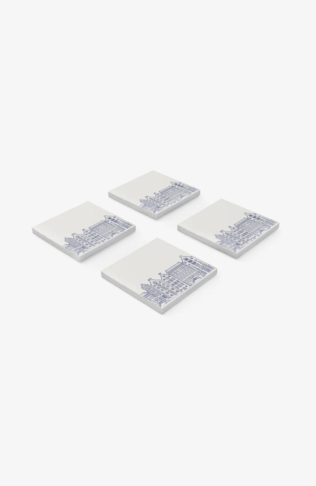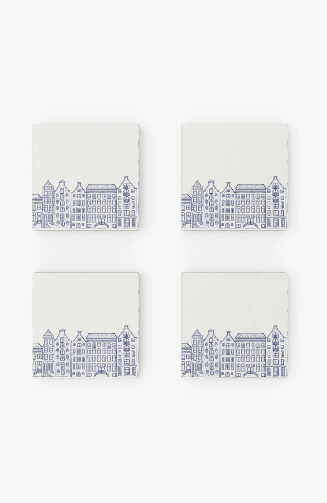 Indulge in the charm of Amsterdam with our Amsterdam Natural Stone Coaster Set. This set of four exquisite coasters showcases the iconic Amsterdam canal houses in elegant delft blue shades. Crafted from genuine Pamukkale travertine stone, each coaster offers a delightful blend of artistry and functionality, featuring anti-slip bases to protect your surfaces. They serve as daily reminders of Amsterdam’s beauty and heritage, making them the perfect conversation starters and collector’s items. Elevate your decor with these coasters, adding a touch of timeless elegance to your living space. Embrace the spirit of Amsterdam in your home and order this exquisite coaster set today.