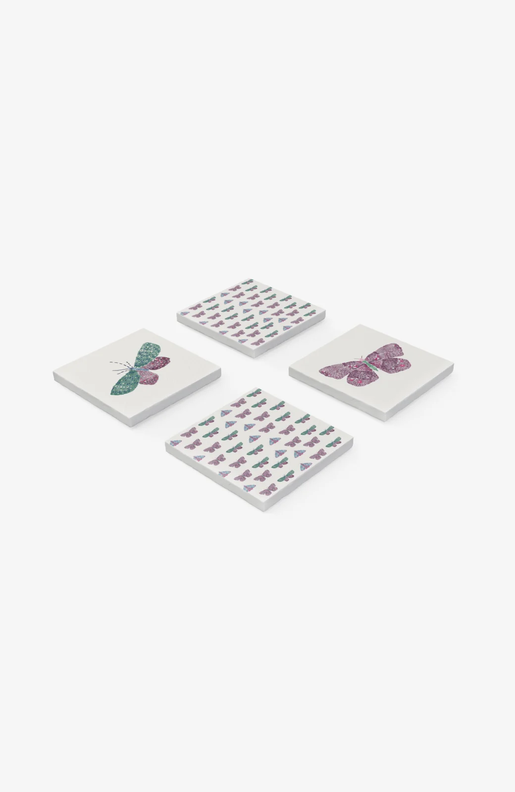 Introducing our Butterfly Natural Stone Coaster Set, a delicate and elegant addition to your decor. These coasters feature pastel-colored butterflies with two larger, single butterflies on some and a charming pattern of smaller butterflies on others, exuding chic minimalism. Crafted from genuine Pamukkale travertine stone, their textured surface offers a tactile experience. The non-slip felt base ensures stability and protects your surfaces. These coasters are ideal for those who appreciate the beauty of butterflies and desire a touch of sophistication in their space. Perfect for both classic and modern decor, this set adds a subtle, nature-inspired charm to your home. Embrace the beauty of these winged wonders, and let your home decor take flight with the Butterfly Set.
