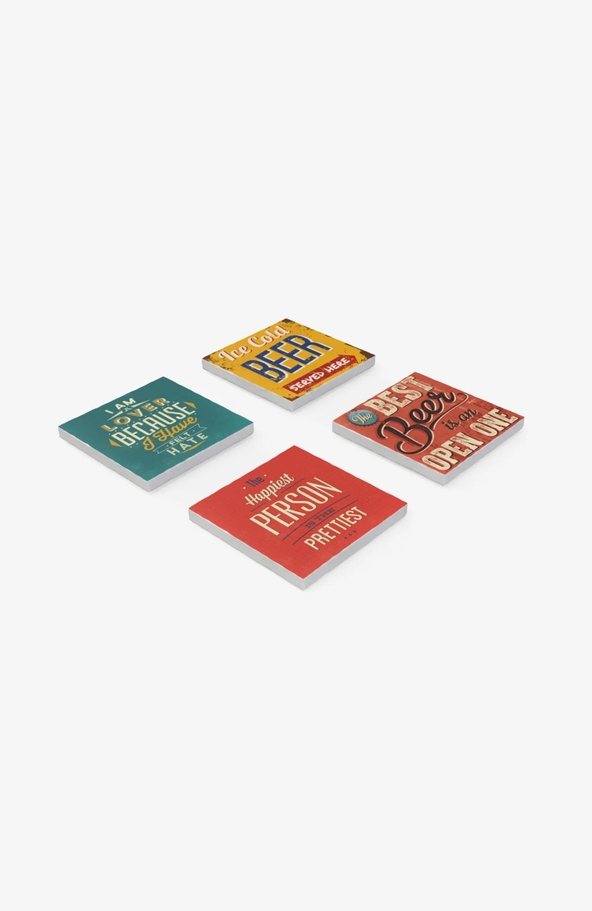 Indulge in the nostalgia of good times with our Vintage Beer Set, expertly crafted from the luxurious Pamukkale travertine stone and featuring a non-slip base for added stability. This set of four coasters captures the essence of classic beer-themed designs, making it a perfect choice for those who appreciate the art of brewing. With a rustic and vintage-inspired appearance, these coasters display an array of quotes that will evoke contemplation while you enjoy your favorite brews. Cheers to your home bar’s new rustic charm, thanks to this timeless beer-inspired set.